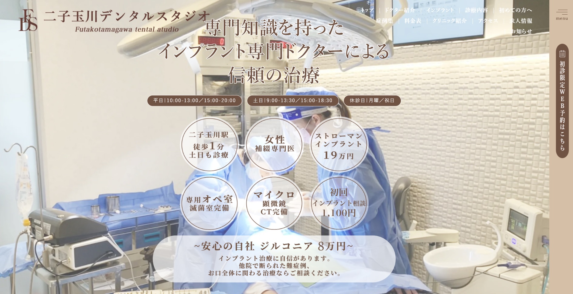 二子玉川デンタルスタジオは、二子玉川駅から徒歩1分の場所にある、最新の医療設備を完備した歯科クリニックです。精密インプラント治療や美容審美歯科など、幅広い診療を提供し、特にフラップレス手術による「なるべく切らないインプラント」治療が可能です。CTやマイクロ顕微鏡を用いた高精度な診断、そして熟練技工士による純国産ジルコニアセラミックスの使用により、患者さんの負担を軽減しながら質の高い治療を実現しています。患者さん一人ひとりに合わせた治療計画を立て、納得のいく治療を心がけています。
