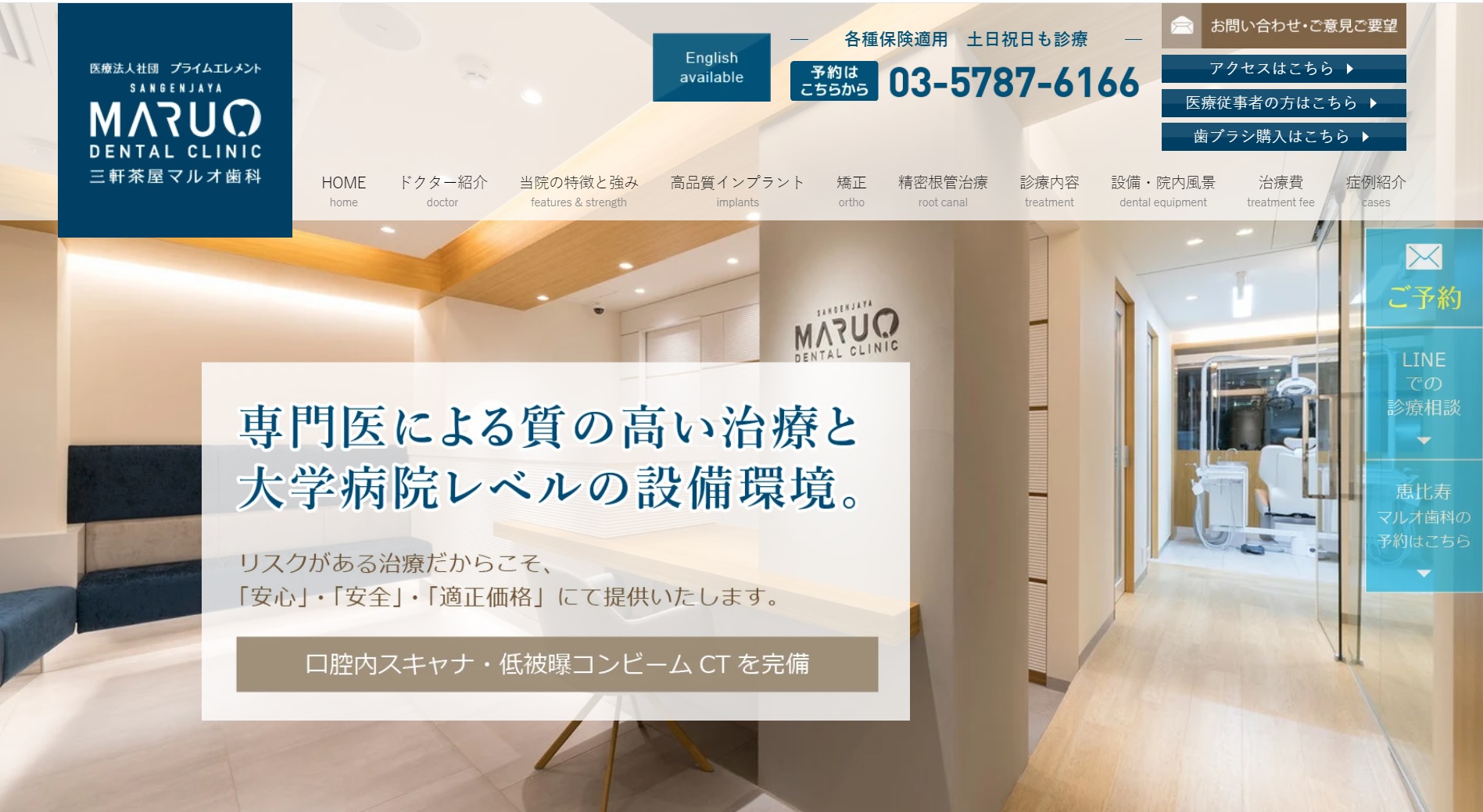 三軒茶屋マーレ歯科は、週末の土曜日も診療を行い、平日は夜7時半までの診察を提供しています。