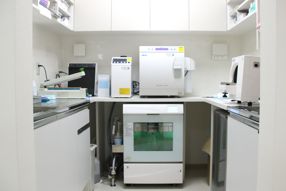 SBS歯科クリニックでは、オートクレーブによる高圧蒸気滅菌やディスポーザブル製品の使用により、院内感染の予防に努めています。超酸性水を使用した治療は、化学薬品を使用せずに全ての病原菌に対して有効な殺菌作用を持たせることで、患者様が安心して治療を受けられる環境を提供しています。